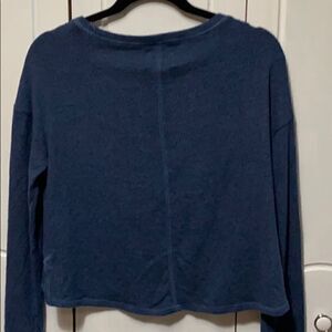 Gilly Hicks gorgeous cropped navy blue long sleeve scoop neck sweater in great condition. Side slits and very soft and warm. Acrylic is the material. Armpit to armpit is approximately 22” flat. Definitely oversized. Really soft and cozy.