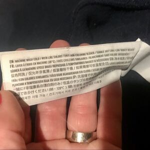 Navy blue shirt sweatshirt with Gilly Hicks down arm in white writing