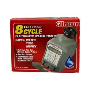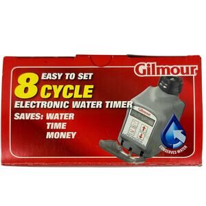 Get ready to simplify your lawn and garden watering with this Gilmour Electronic Water Timer, Cycle Model 9408GF! This timer is brand new in its original box and ready to use. With this timer, you can easily set watering schedules and cycles, ensuring your plants receive the perfect amount of water, exactly when they need it.