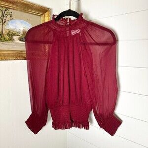 Gilner Farrar Dell Chiffon Blouse Ruby Burgundy Maroon Size Small