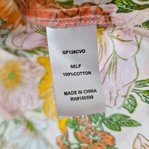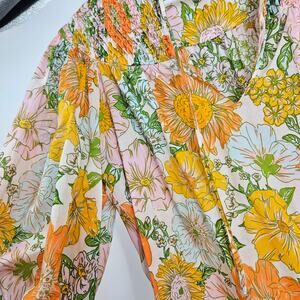 Gilner Farrar Peasant Blouse Orange Yellow Floral Smocked Balloon Sleeve Size S