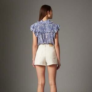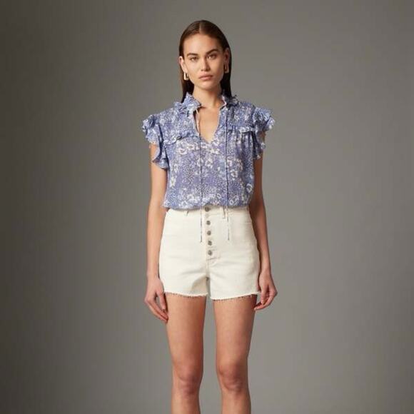 Gilner Farrar | Women’s Sienna Top Blouse Blue Meadow Smocked Tie Neck Ruffles XS