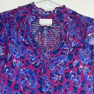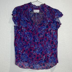 Gilner Farrar Sienna Blouse Flutter Sleeve Blouse Blue/Purple XS New