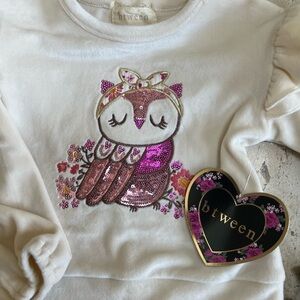 BTWEEN NWT Sequins Owl Velour Ruffle Shirt 2T