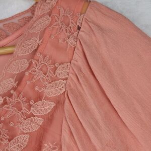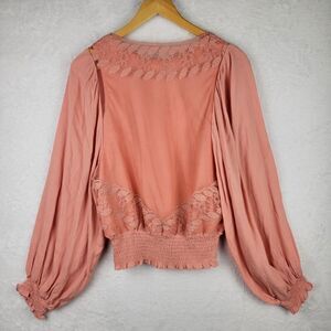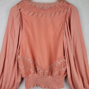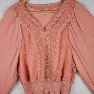 Gimmick Boho Lace Blouse Long Sleeve Elastic Waist Peach Cottagecore Sz S Top