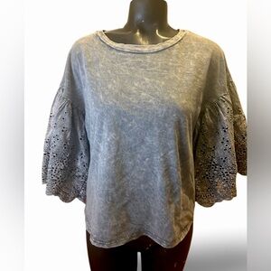 Gimmicks Acid Wash Blouse Drop Shoulder Top Grey Small NWT