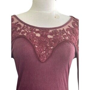Gimmicks BKE Women M Plum Crochet Lace Front And Shoulders Long Sleeve Tee