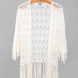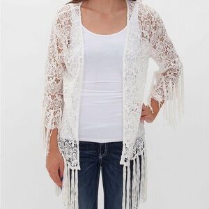 Gimmicks BKE long lace FRINGE kimono duster Large L