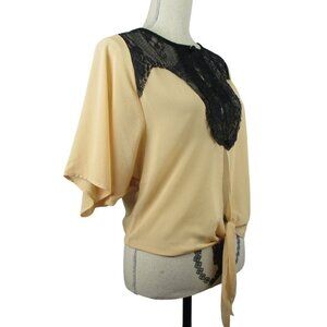 Gimmicks By BKE Blouse Top Black Lace Panel Front Button Tie, Dolman Sleeve, Romantic look and feel. Size Small.