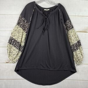 Gimmicks By BKE Women’s L Black Tunic Balloon Sleeve Floral Lace Front