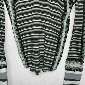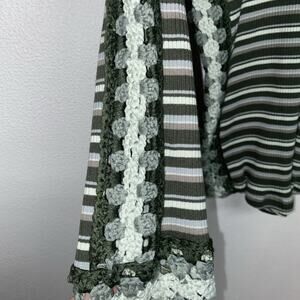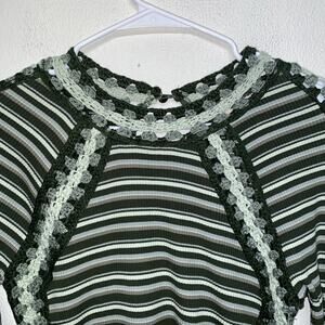 Gimmicks Crochet Accent Fitted Top Green Striped Ribbed Long Sleeve Size Large