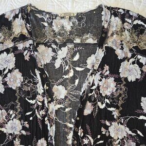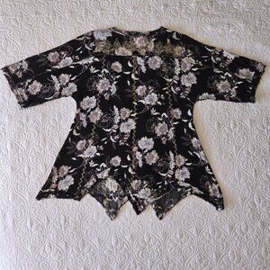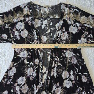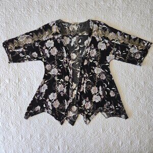 Gimmicks Embroidered Floral Eyelet Kimono Top with Shark Bite Hem Misses size S