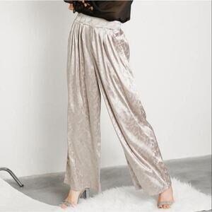 Gimmicks Satin Wide Leg Pants Silver Floral Print Size M