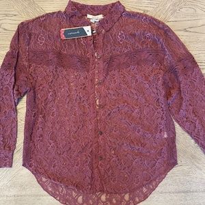 This beautiful blouse is a must-have for any fashionable woman. The delicate lace fabric adds a touch of elegance to your wardrobe, while the sheer design makes it perfect for a night out or a special occasion. The blouse is new with tags, ensuring the highest quality and authenticity.