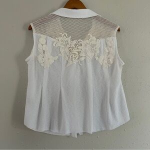 Gimmicks White Cream Pieced Crochet Tank Top Western Casual Classic Large Buckle
