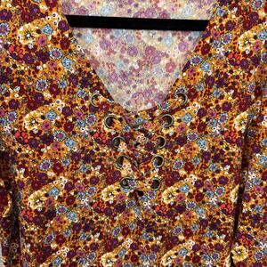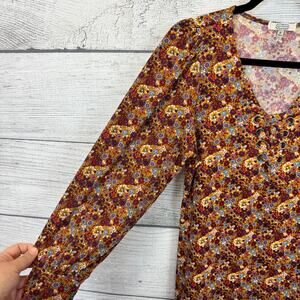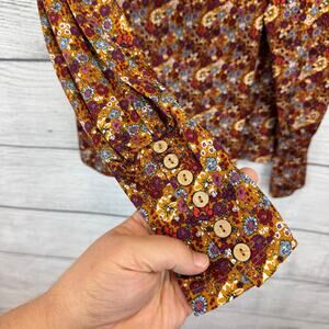 Gimmicks Women's Gold Purple Floral Fall Long Sleeve Blouse Size Small