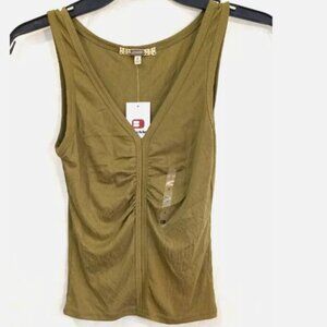 Gimmicks Women's Juniors Top Sz S Olive Green Sleeveless Front Ruching NEW