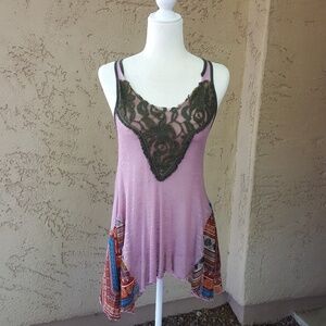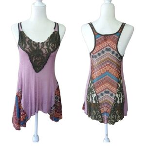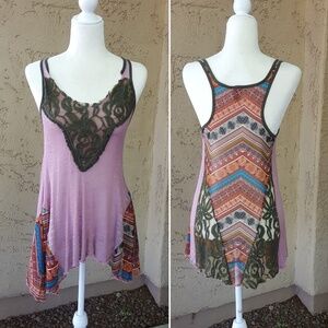 Excellent pre owned condition. Gimmicks By BKE. Crochet Festival Boho Tank Top. Tight Top Flowy bottom fit. Multi fabrics.