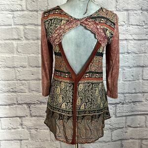 Gimmicks by BKE Boho Floral Patchwork Top