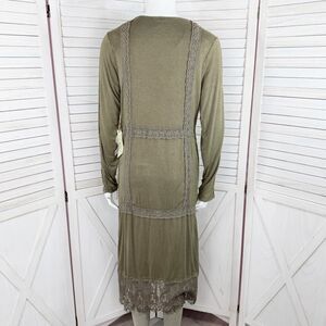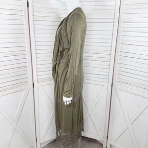 Gimmicks by BKE Buckle Boho Lace Trim Cardigan Duster Olive Green Small