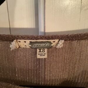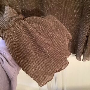 In good condition no issues see pics for measurements. Top is ribbed, sparkles, bell sleeve , sheer, ruffle accents