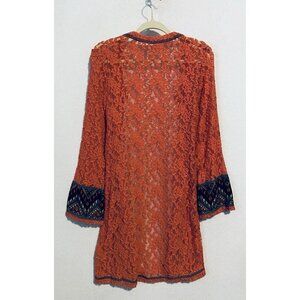 Gimmicks by BKE Cardigan Womens XL Coral Orange Lace Open Front Aztec Trim Boho