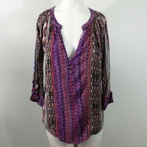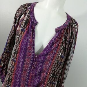 Gimmicks by BKE Peasant Top Size XS Boho Embroidered 3/4 Sleeve Purple V-neck