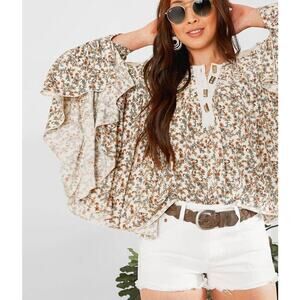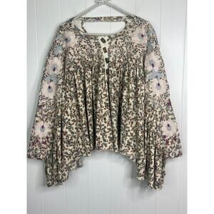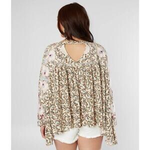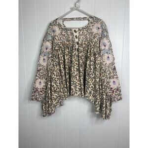 Gimmicks by BKE Floral Embroidered Flowy Henley Top Size Small