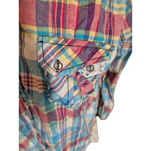 Gimmicks by BKE For The Buckle Boho Western Lace Crochet Plaid Shirt Top Sz M/L