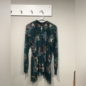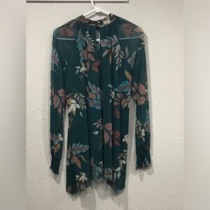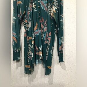 Gimmicks by BKE Leaf Print Mesh Henley Top Asymmetrical Hem Keyhole Cut Outs M