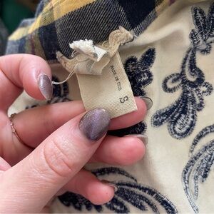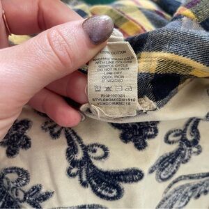 Gimmicks by BKE Plaid Flannel Lace Embroidered Distressed Button-Down Shirt Sz S