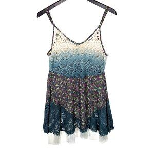 Gimmicks by BKE Size M Bohemian Crochet Halter Top High Low Tulle Ombre Tank