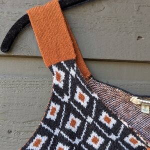 Excellent preowned condition western boho knit lace up crop tank top from Gimmicks by BKE. Wide, thick straps. Black, white, terracotta brown allover diamond pattern. Very stretchy! Machine washable. Clean. No flaws.