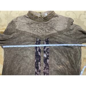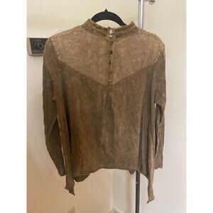 Gimmicks by BKE Womens Medium Blouse Long Sleeve Brown Lace Animal Cheetaj Print