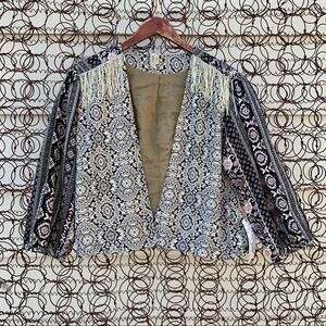 Gimmicks by BKE western boho batik fringe open front jacket LARGE NWT