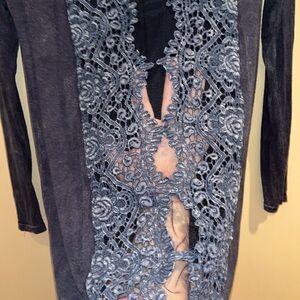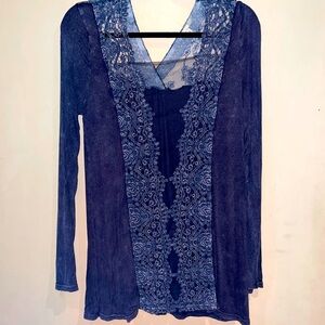 Gimmicks by bke blue long sleeve Lacey boho styled top size Small