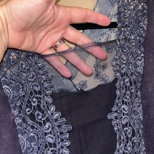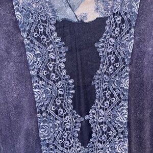 In great shape preowned. Beautiful lace detail. Soft fabric. Center is sheer.