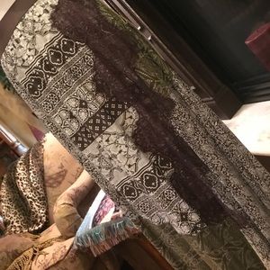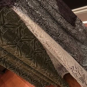 Gorgeous patch work skirt. Beautifully designed with purple and cream colored lace that accents the skirt perfectly. 44" in length