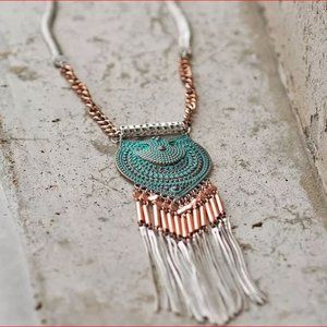 At the heart of this necklace lies a captivating Patina-colored medallion, adding an element of vintage allure and timeless beauty. Each detail is meticulously crafted to evoke a sense of antiquity and sophistication, making it a standout accessory for any occasion.