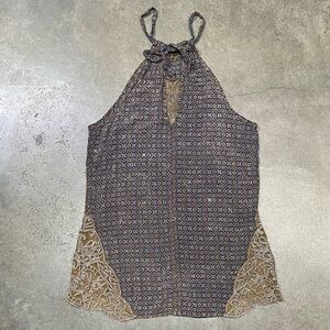 Gimmicks x BKE Buckle Boho Lace High Neck Halter Top Geometric Cottagecore