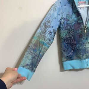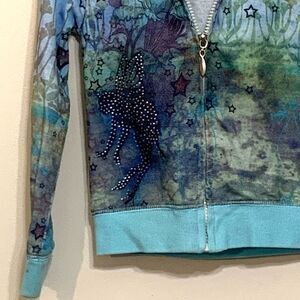 Graphic Forest printed with sequined fairy on front. Stars throughout.