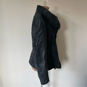 Gimo's GMS-75 Distressed Black High Cowl Neck Hidden Placket Leather Jacket 3XL
