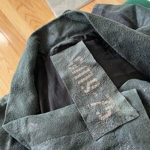 Fabric: 100% Leather Outer; Lining: 60% Polyester, 35% Cotton; Sleeves Lining: 60% Acetate, 40% Viscose
