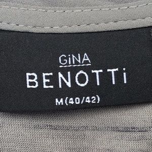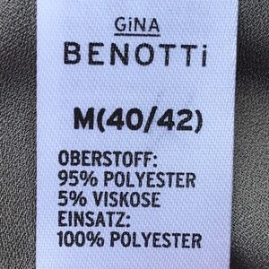 Gray long sleeve tunic top with sheer back by Gina Benotti. Nice, flowy design with rounded hems and sheer material in back that reaches about half way up. New without tags. 95% polyester and 5% viscose; sheer insert is 100% polyester. Size M, measures about 21 inches across from armpit to armpit and 26 inches in length in front with the back being a bit longer. Sleeves are 25 inches long. B8