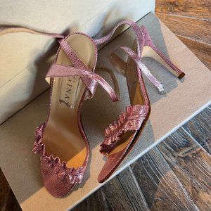 Gina Designer Leather Pink Barbie / Party Ruffle Heels