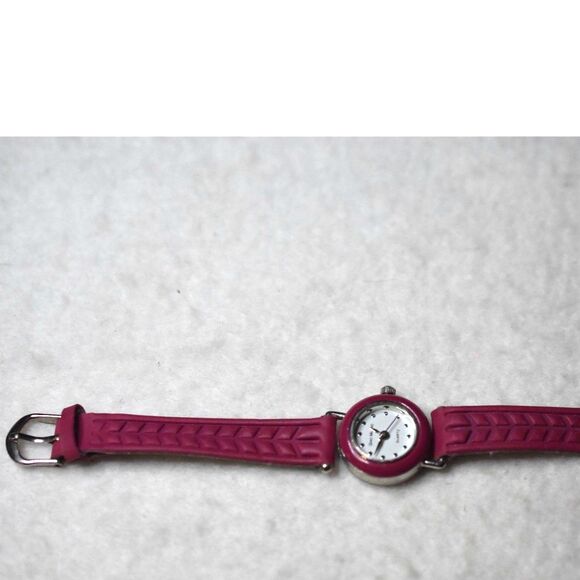 Gina Milano Tiny Delicate Red Textured Silicone Band Silver Tone Accent Watch New Battery Work Great
