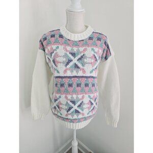 Gina Peters Fair Isle Vintage Crew Pullover Knit 80s 90s Geometric Sweater L