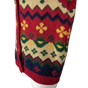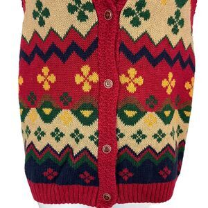 Gina Peters Vintage Red Green Blue Cardigan Vest Chunky Knit Sweater sz Small