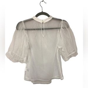 Gina Women’s Top Puff Sleeve Sheer Diamond Pattern Cropped Single Button Close