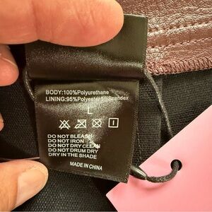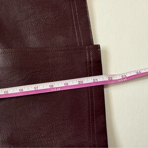 Step out in style with this elegant burgundy leather skirt. Perfect for any occasion, this skirt offers a chic and sophisticated look. Waist is 32 inches length is 21 inches.